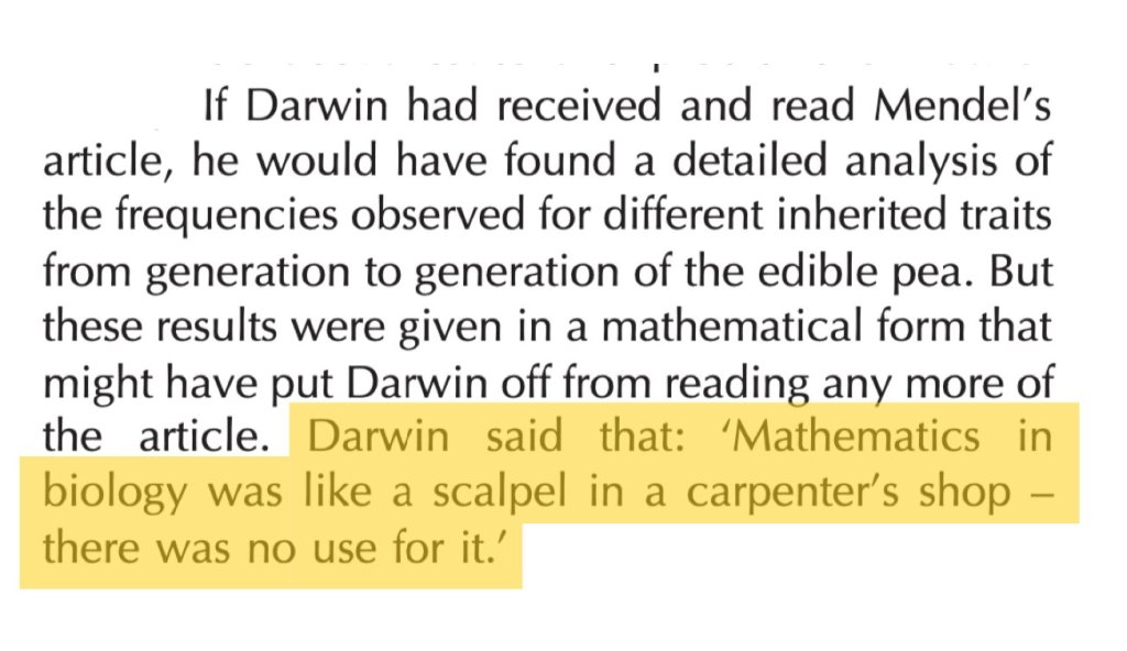 The laws of Genetics were discovered by a monk (Mendel) using something rare for Darwinists: math & method. Darwin had ignored or missed Mendels’ work. Now some claim he was a fellow “Darwinist” because he had read the Origins & used Darwinian vocabulary like… “element”.