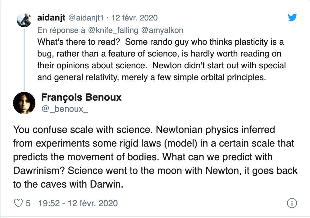 Let’s say you live in a game simulation. You know that similar guns will have a similar impact (physical laws). Similar players behave similarly & all survived players adapted to the game. Like Aristotle or Cicero would have noticed. No need to assume Darwinism to win the game.
