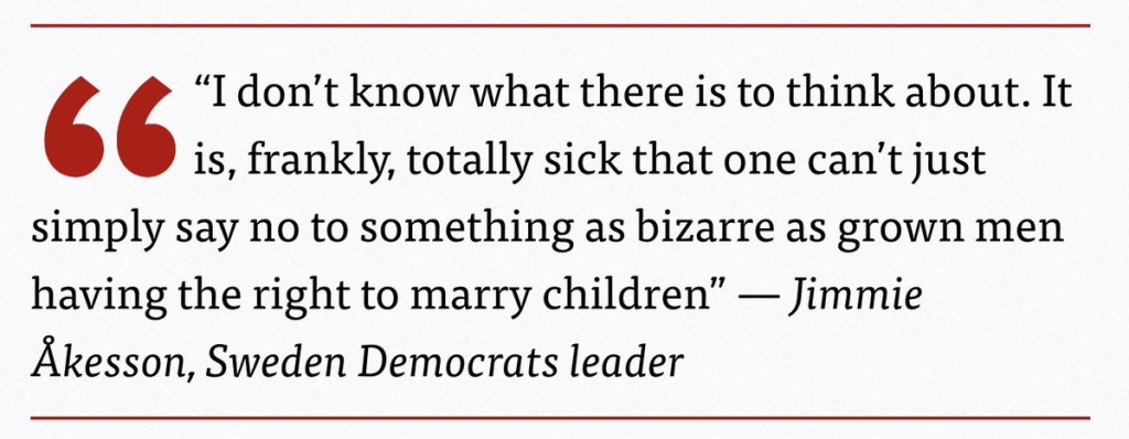 Everything that I write has a context. All great ancient philosophers lived as immigrants. I’m not going around randomly accusing immigrants. But let’s not pretend a huge problem doesn’t exist. Official child-adult marriages is an “immigrated” problem.