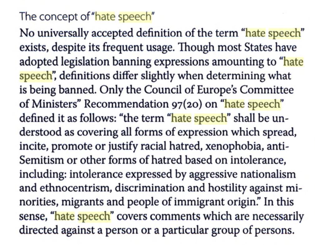2/ From the Manual on hate speech: Hate speech, by definition, covers ALL forms of xenophobia. By the greek etymology xenophobia is the fear (phobos) of xenos (stranger). Seems Hate Speech is a tool to protect