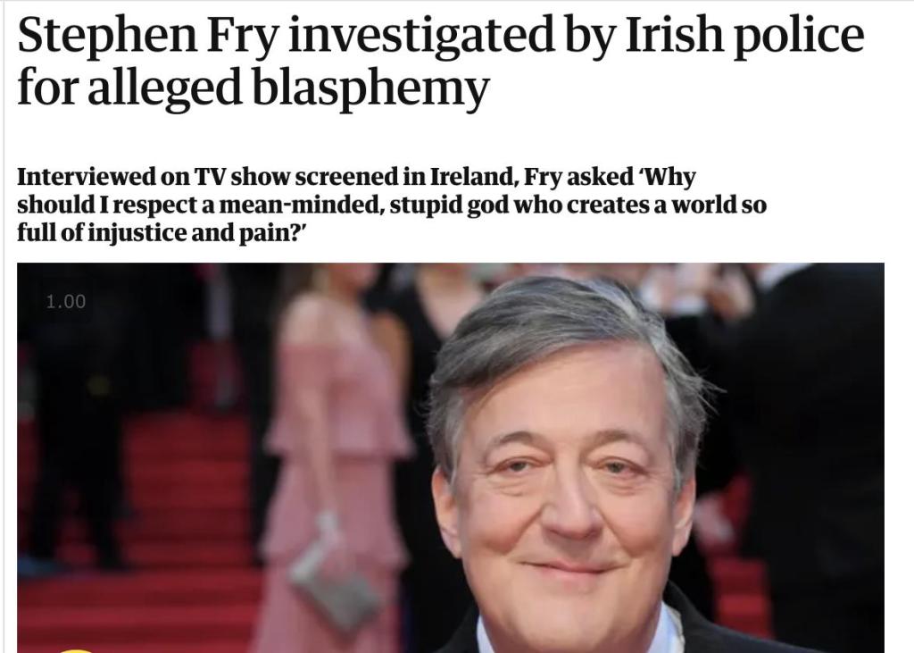 10/ Suddenly, in 2017 the Irish police contacted Stephen Fry, the famous actor, and questioned him for breaking the constitutional blasphemy laws of Ireland.