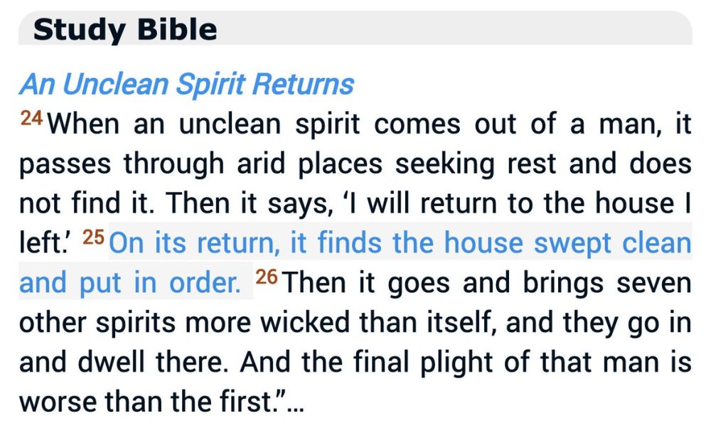 5/ Luke 11:26, Jesus describes the cascade “Then it goes and brings seven other spirits more evil than itself”
